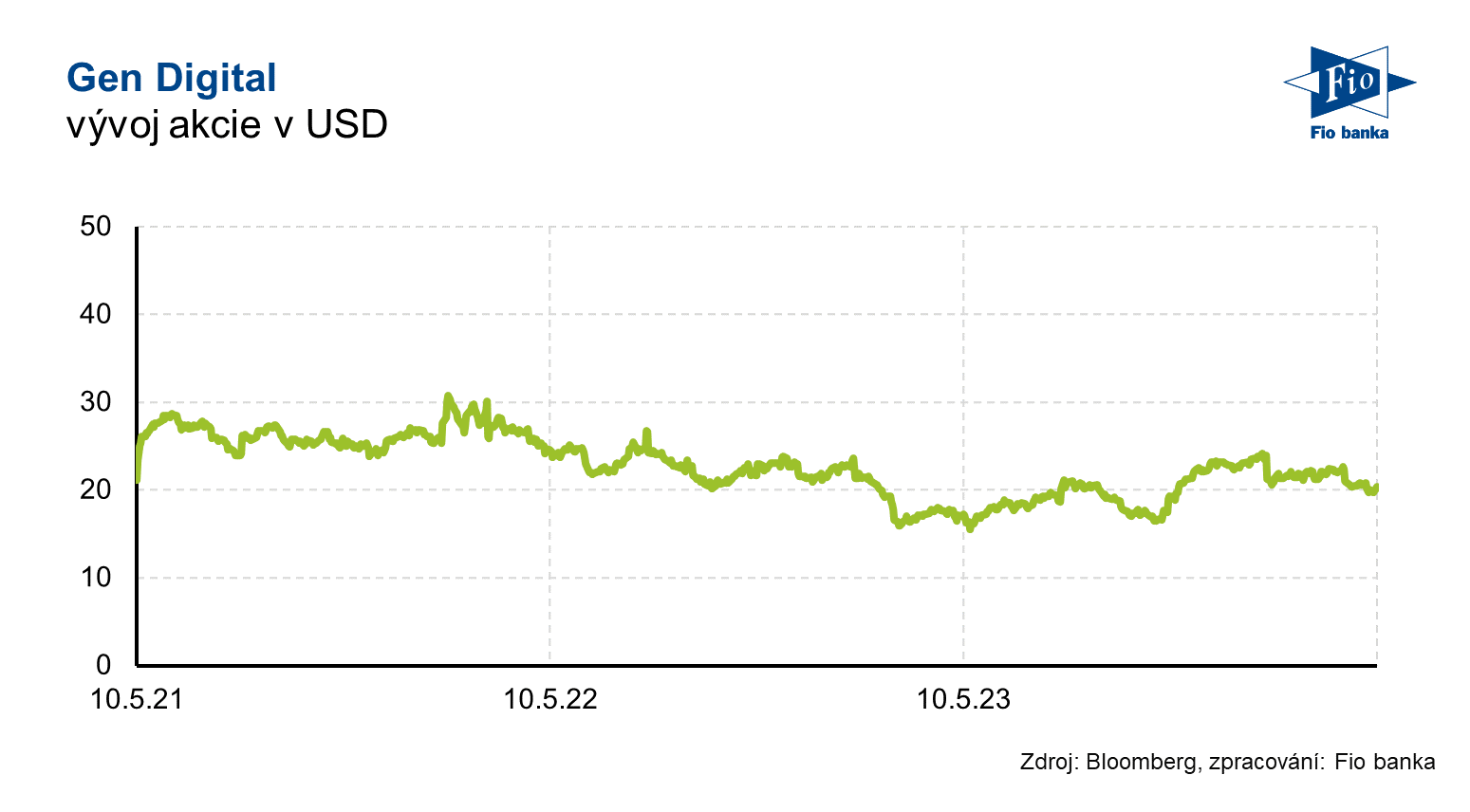 Za celý fiskální rok Gen Digital odhaduje výnosy 3,89 mld. USD až 3,93 mld. USD. Výhled očištěný zisku na akcii je posazen na úroveň 2,17-2,23 USD.
