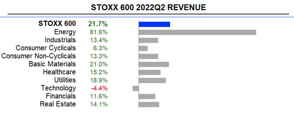 Od evropských společností se za druhý kvartál podle agentury Refinitiv očekává meziroční nárůst čistých zisků v průměru o 21,7 %. Při neuvažování energetické sektoru, jehož zisky vzhledem k aktuálním ekonomickým okolnostem v porovnání s ostatními odvětvími mimořádně vybočují, se čisté zisky podle analytických odhadů zvýší meziročně o 3,2 %.