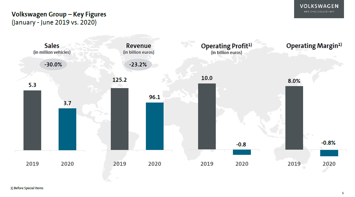 Německý automobilový koncern Volkswagen dnes ráno reportoval výsledky za 2Q 2020. Meziročně se propadl do ztráty, za celý rok 2020 však projektuje alespoň kladný provozní zisk.