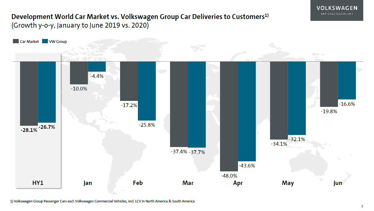 „První polovina roku 2020 byla kvůli pandemii jedno z nejnáročnějších období v historii naší společnosti,“ řekl finanční ředitel Frank Witter. Společnosti se však dařilo klesat méně než trh s automobily, tempo jehož poklesu od dubna již zpomaluje.