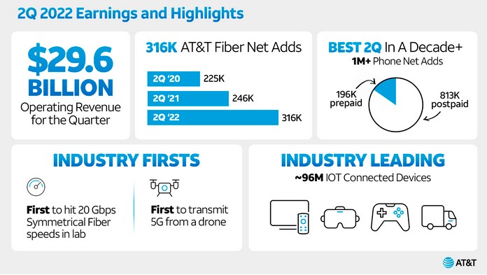 | Výsledky společnosti AT&T (T) za 2Q 2022 | |||