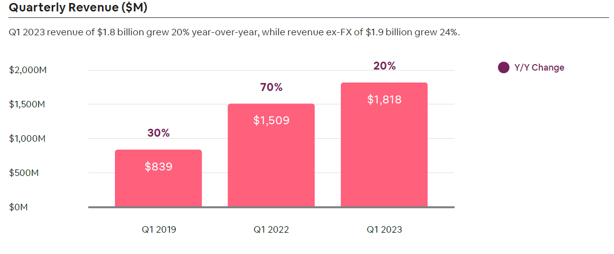 Výnosy ve výši 1,82 mld. USD představovaly v meziročním srovnání 20% nárůst a mírně překonaly průměrná analytická očekávání dosahující 1,79 mld. USD.