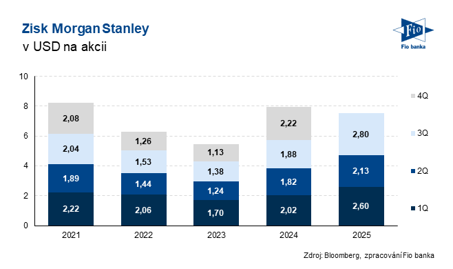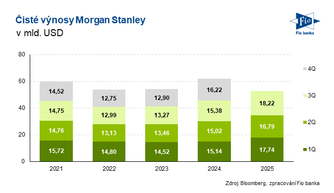 Americká banka Morgan Stanley zveřejnila výsledky hospodaření za třetí kvartál roku 2025. Výsledky překonaly očekávání, když analytici vyzdvihly silný výkon sektoru obchodování s akciemi, který zaznamenal výrazný meziroční růst o 35 % a výrazně překonal očekávání Wall Street.