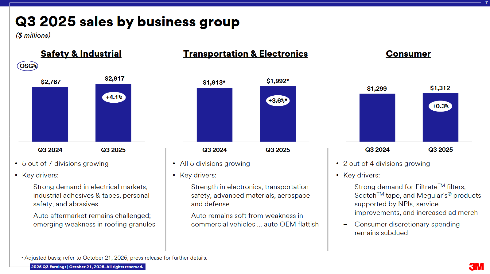 Výsledky společnosti 3M (MMM) za 3Q 2025 | |||