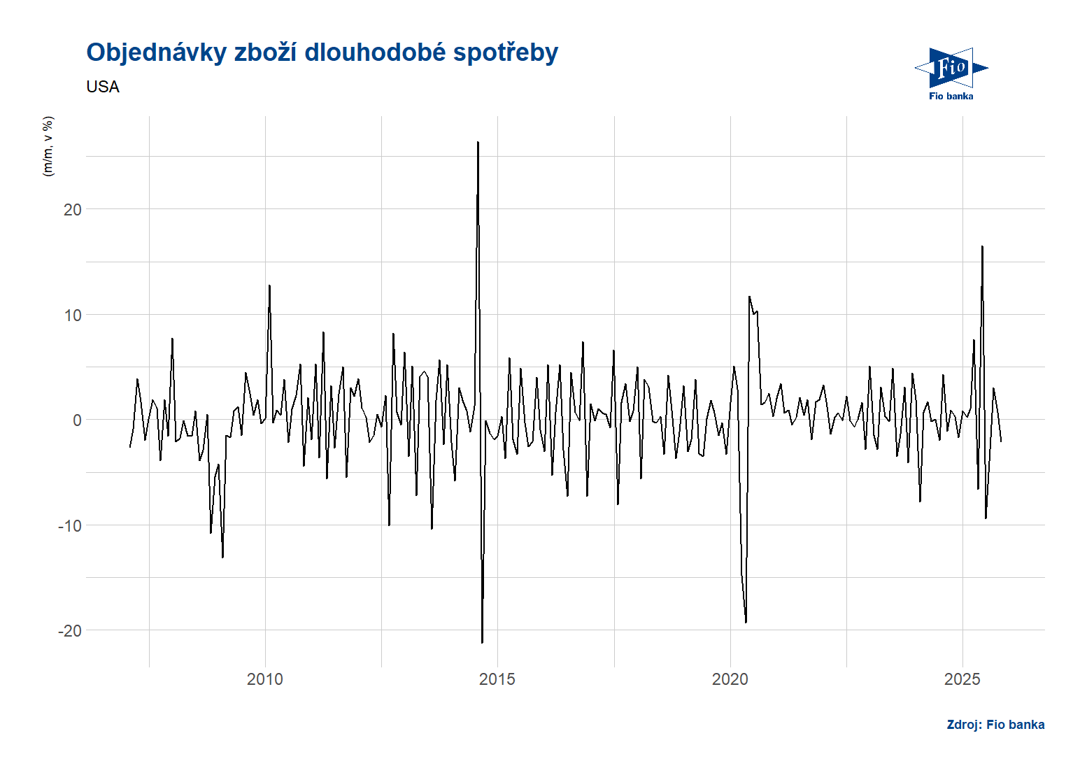 USA: Vývoj objednávek zboží dlouhodobé spotřeby