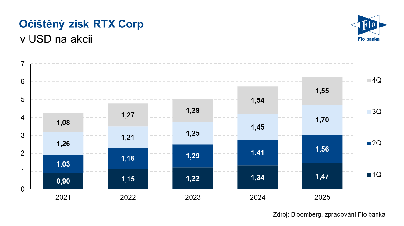 Analytik Rob Stallard z Vertical Partners uvedl, že společnost RTX zakončila rok solidním provozním výsledkem a její úvodní výhled pro rok 2026 je v souladu s tržním konsensem. Dodává, že v souvislosti s nedávnou kritikou ze strany americké vlády RTX rovněž upozornila, že v loňském roce zvýšila produkci munice o 20 %.
