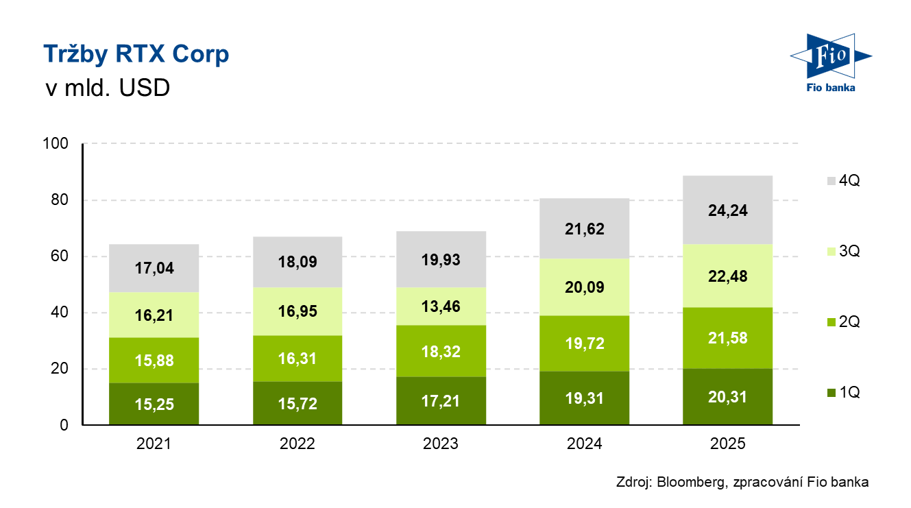 - Vojensko-průmyslový konglomerát RTX reportoval za 4Q nad očekáváním a zveřejnil výhled pro rok 2026