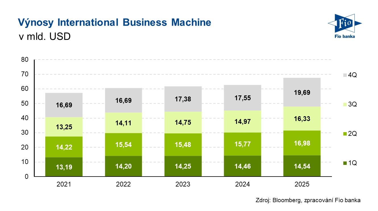 Americká technologická společnost IBM zveřejnila hospodářské výsledky za čtvrté čtvrtletí roku 2025. Firma překonala očekávání jak na úrovni výnosů, tak i očištěného zisku na akcii. Analytici jako hlavní pozitivum vyzdvihli výkon softwarové divize a silný volný peněžní tok.