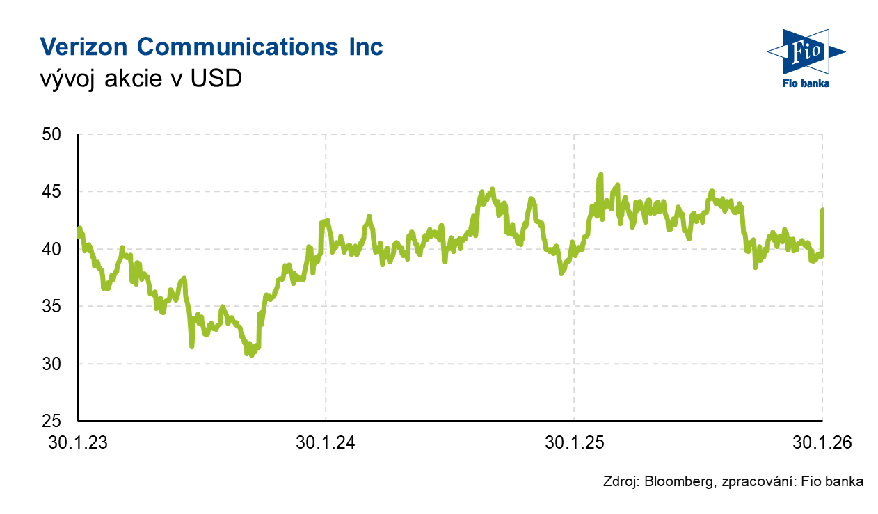 Telekomunikační společnost Verizon zveřejnila výsledky hospodaření za čtvrté čtvrtletí roku 2025. Firma překonala očekávání analytiků v klíčových ukazatelích, zejména v počtu nových mobilních zákazníků. Společnost zároveň oznámila nový program zpětného odkupu akcií až do objemu 25 mld. USD a představila výhled, který je u ukazatelů, jako je očištěný zisk na akcii a volné cash flow, nad tržním konsenzem.