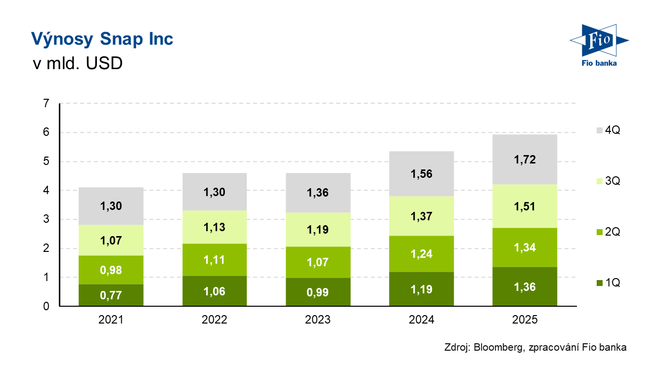 Americká sociální síť Snap zveřejnila výsledky hospodaření za poslední kvartál roku 2025. Dle analytika z JPMorgan společnost překonala očekávání investorů, ale stále ji zatěžuje počet uživatelů a velcí inzerenti. Nejistota je také spojena se spoluprácí s Perplexity. Analytik z B Riley Securities ocenil, že jsou již viditelné známky zlepšení v rámci strategie "udržitelného silného růstu výnosů".