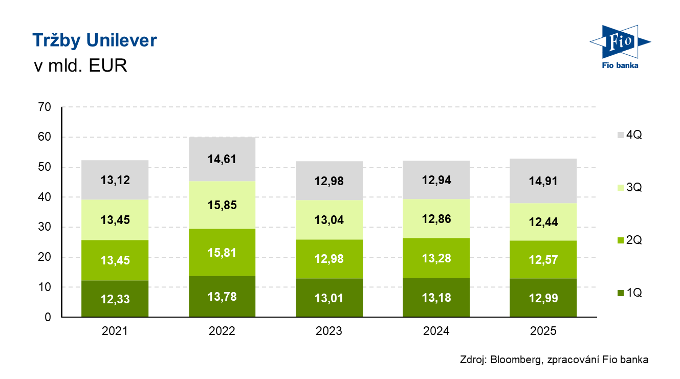 Za celý uplynulý rok vykázal Unilever tržby ve výši 50,5 mld. EUR, což je pod očekávání trhu. Analytici predikovali 51,3 mld. EUR.