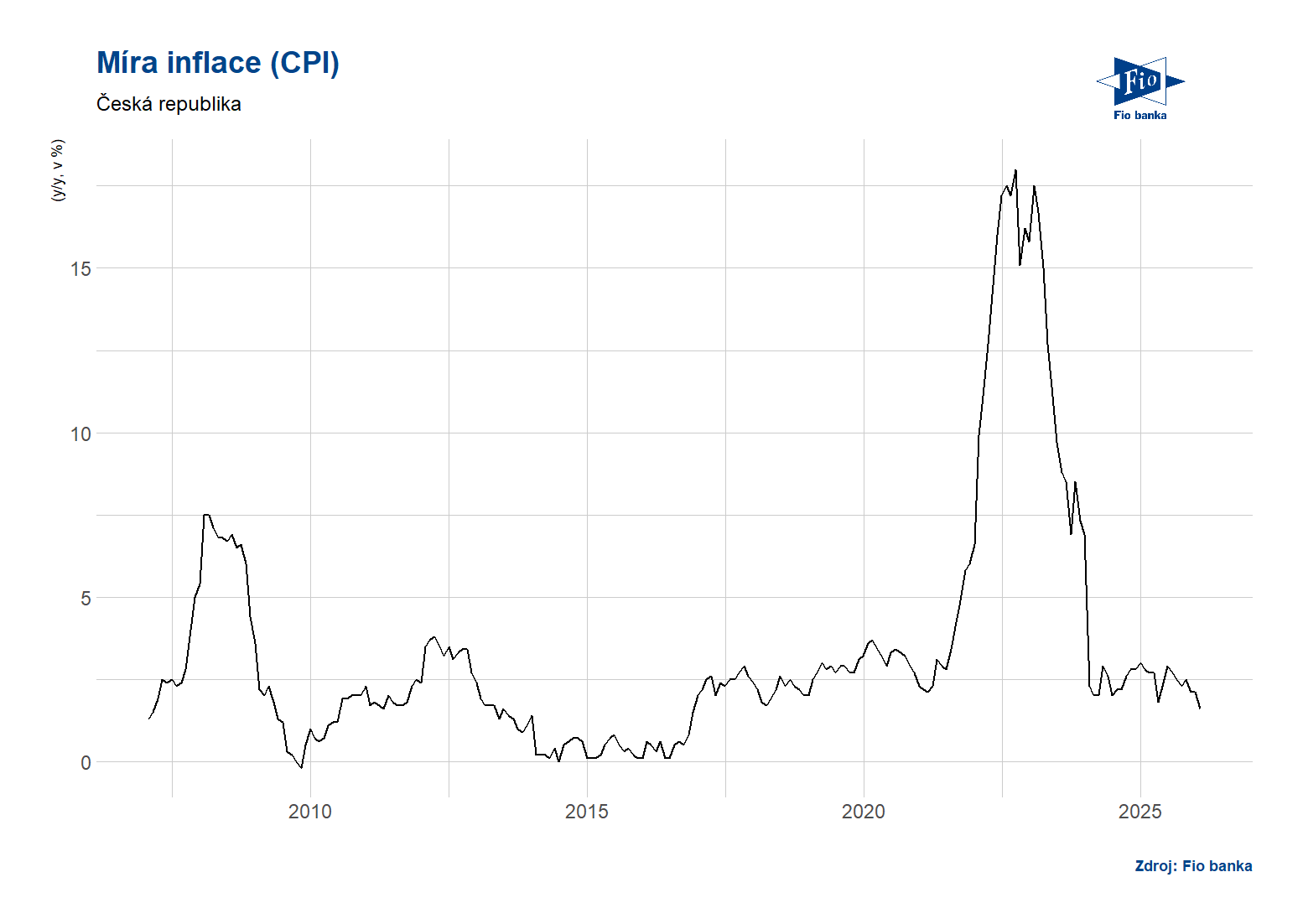 ČR: Index CPI v lednu podle konečných dat meziročně vzrostl o 1,6 % v souladu s očekáváním