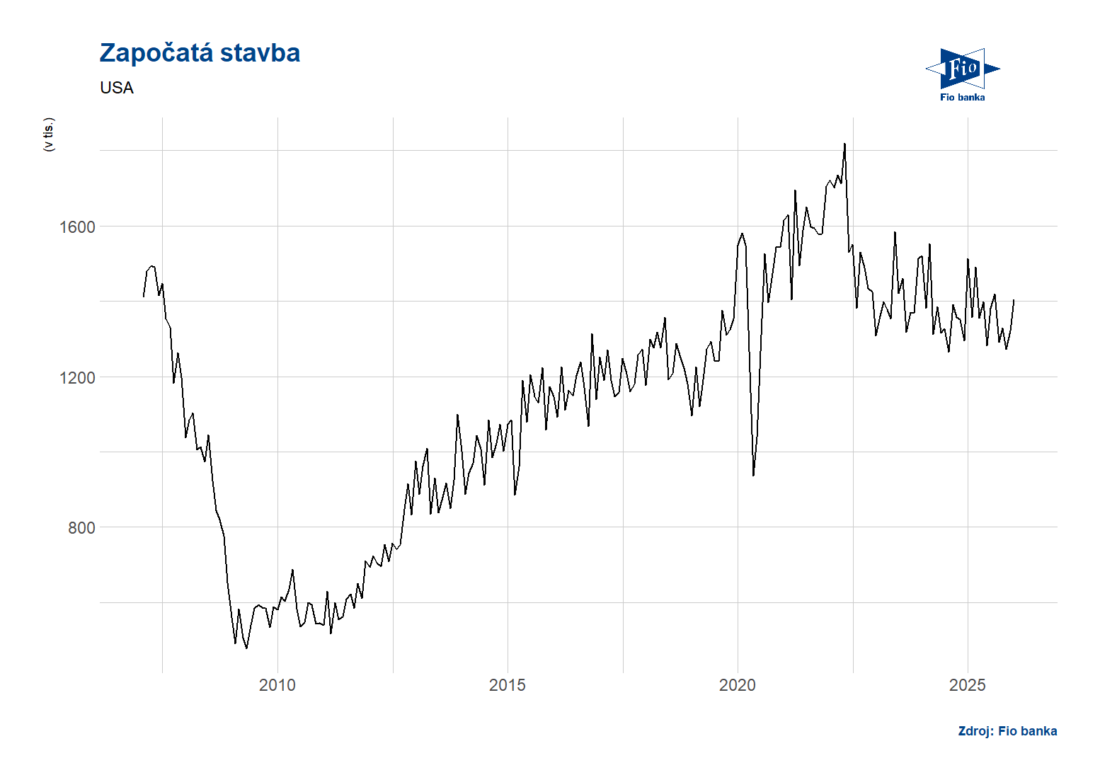 - USA: Započatá výstavba v prosinci dosáhla 1404 tis. při očekávání 1304 tis.