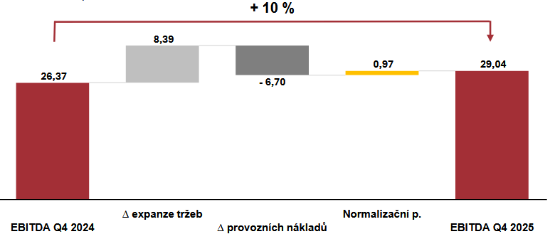 Provozní zisk EBITDA vzrostl meziročně o 6,44 % a dosáhl 28,07 mil. EUR.