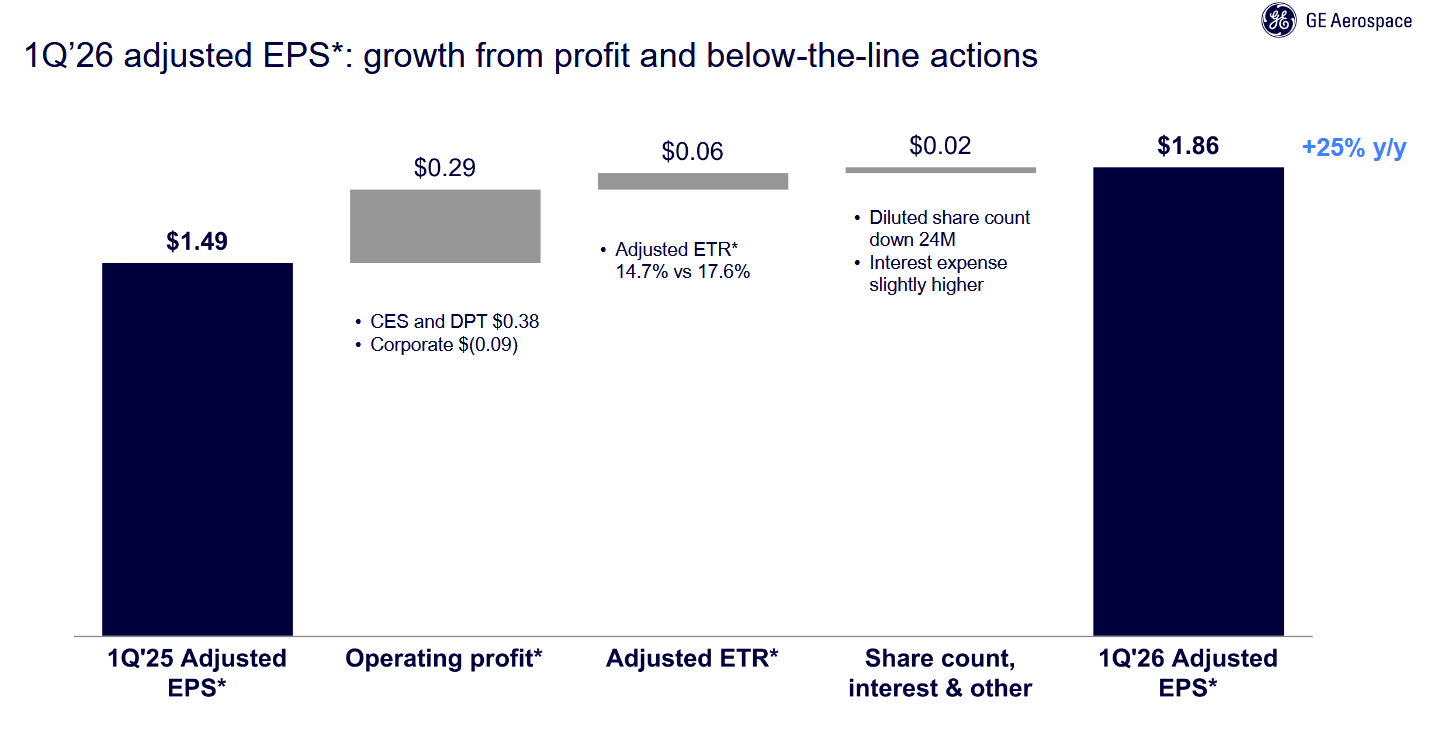 | Výsledky společnosti General Electric Aerospace (GE) za 1Q 2026 | |||
