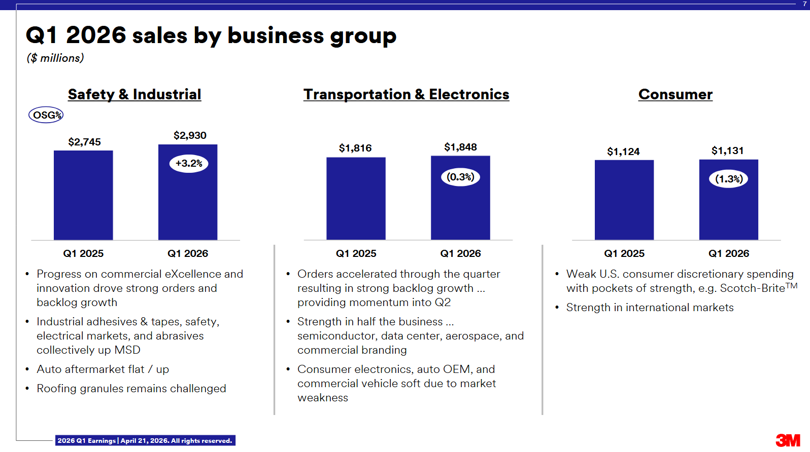 | Výsledky společnosti 3M (MMM) za 1Q 2026 | |||