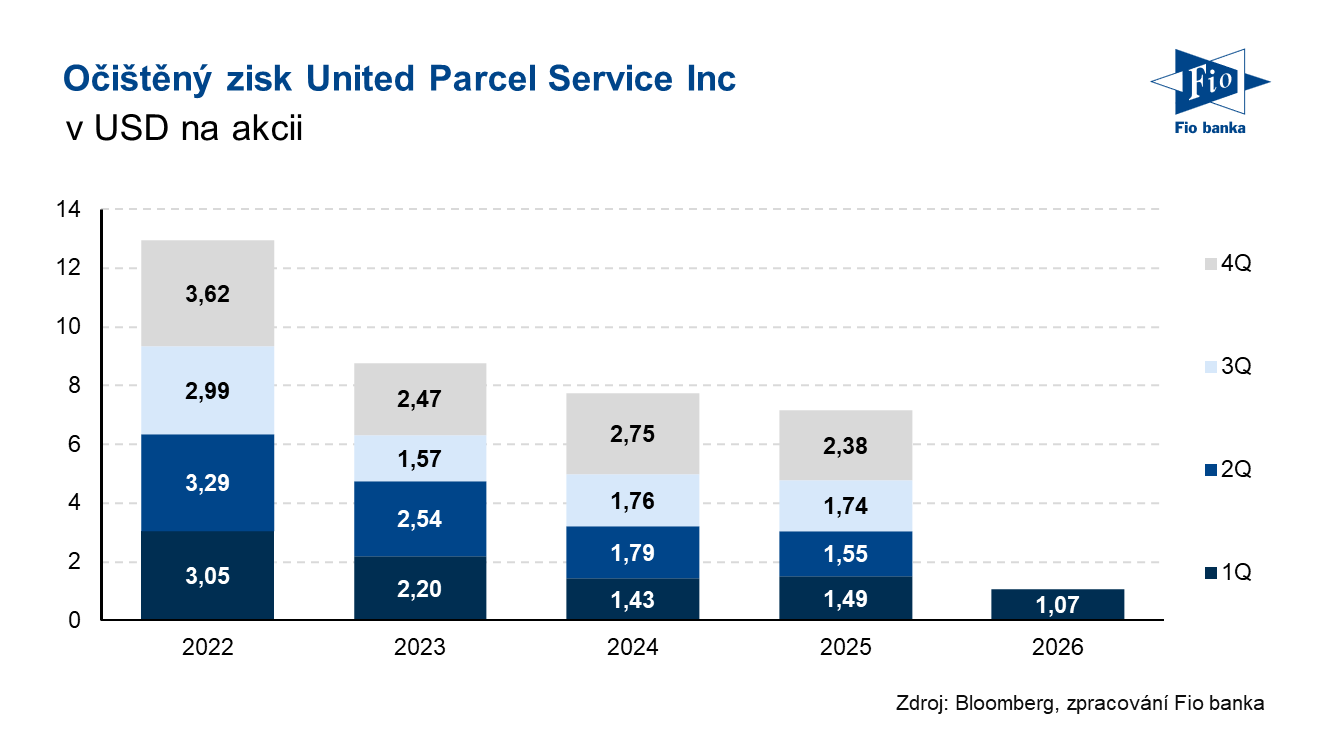 Americká přepravní společnost UPS zveřejnila výsledky za první čtvrtletí roku 2026. Přestože tržby i očištěný zisk na akcii překonaly očekávání, investory zklamalo ponechání celoročního výhledu beze změny a slabší marže v americkém balíkovém segmentu. Podle analytiků byla přitom očekávání před zveřejněním výsledků vysoká.