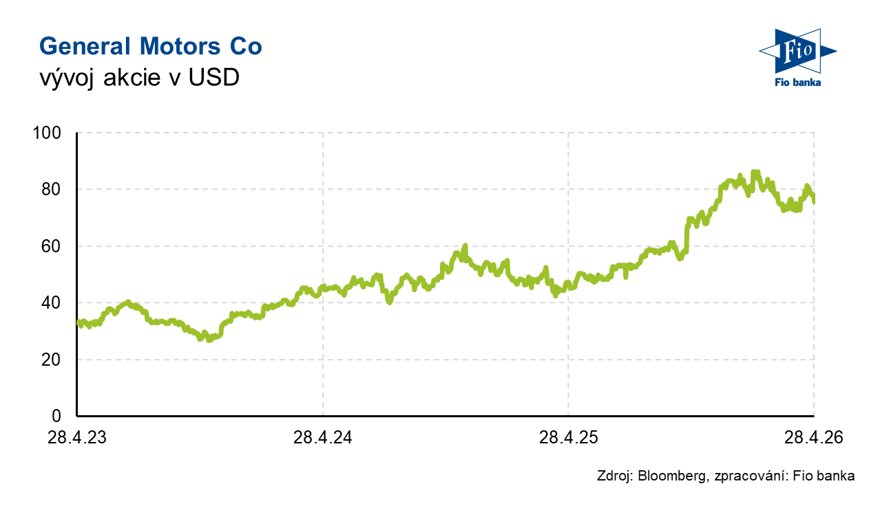 Automobilová společnost General Motors zveřejnila výsledky hospodaření za 1Q 2026. Tržby byly v souladu s tržním očekávání. Management díky pozitivnímu vývoji a úlevě z celních poplatků přistoupil ke zvýšení celoročního výhledu očištěného zisku EBIT o 500 mil. USD. Výsledkům překvapivě pomohl i pokles prodejů v segmentu elektromobilů, které jsou pro automobilku v současnosti stále ztrátové.