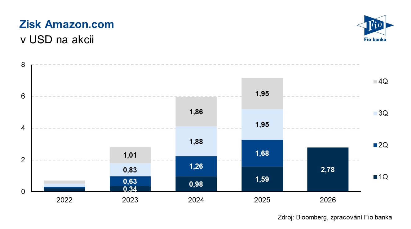 Vývoj zisku na akcii společnosti Amazon